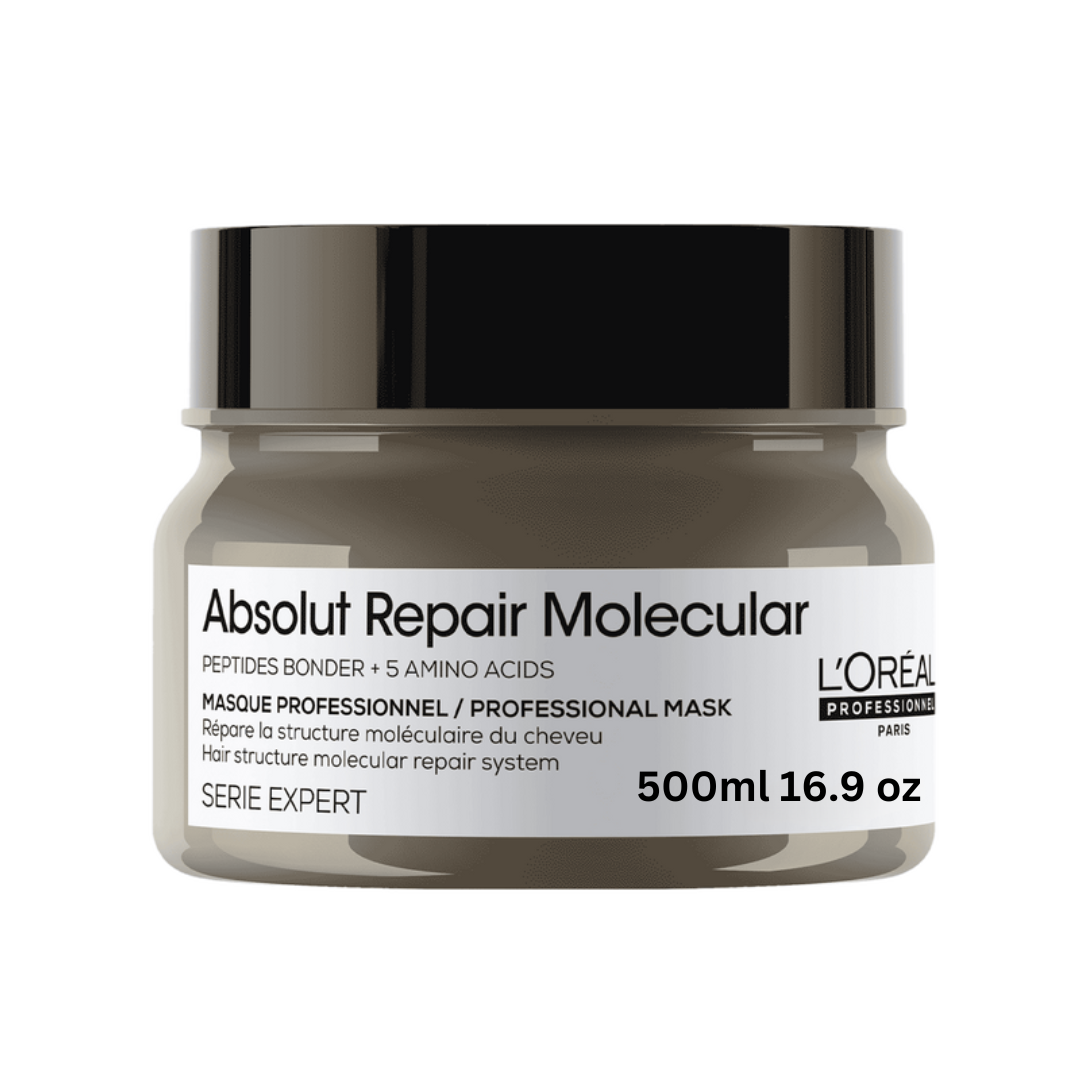 L’Oréal Professionnel’s advanced research team has equipped the Repair Molecular hair mask with a cutting-edge formula that combines peptides bonder and 5 amino acids. Peptides bonder is a patented ingredient that helps target hair damage at the molecular level. Amino acids are a powerful ingredient that works dedicatedly to strengthen and thoroughly nourish the hair.