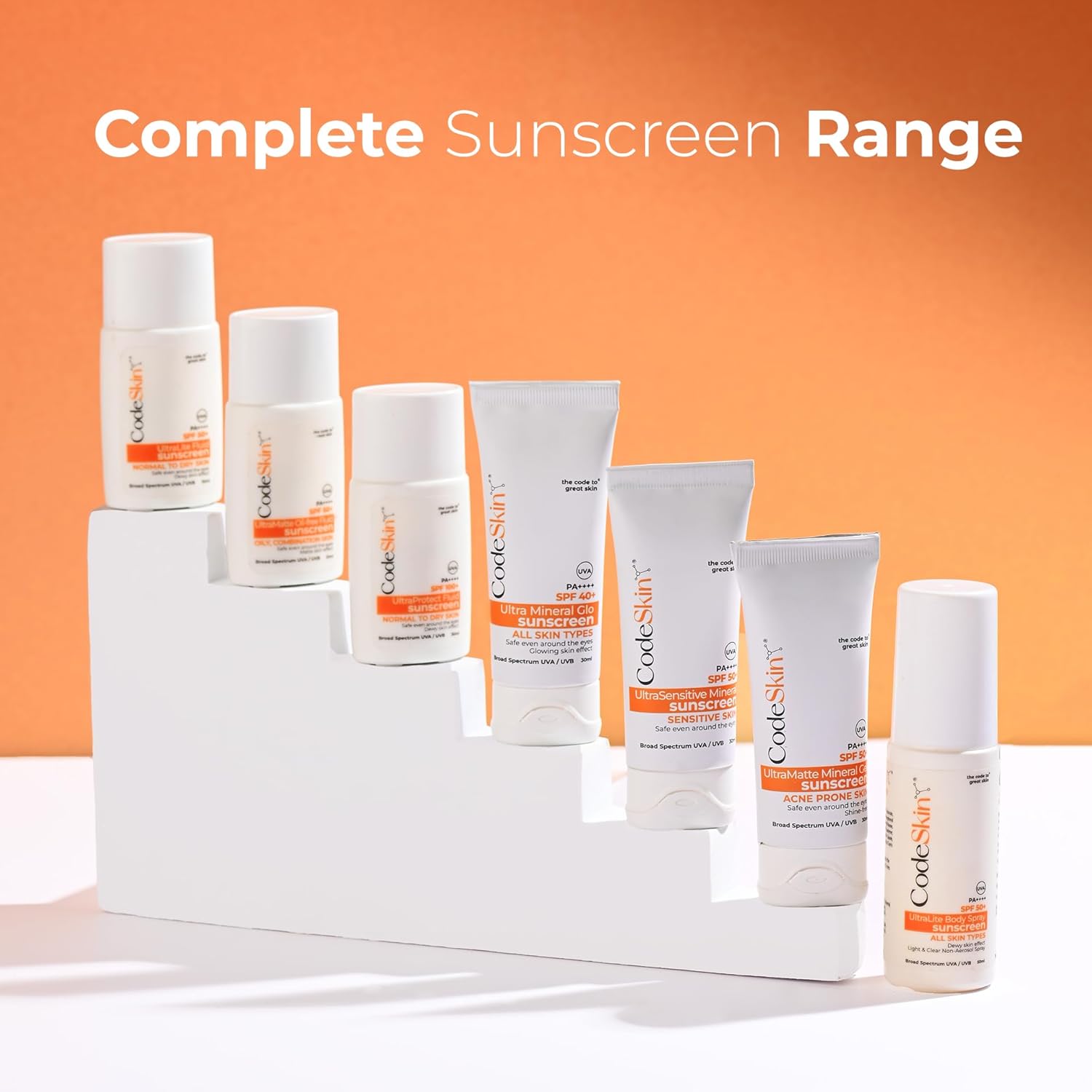 CodeSkin Ultra Mineral Glo Sunscreen contains: Non-nano Zinc Oxide