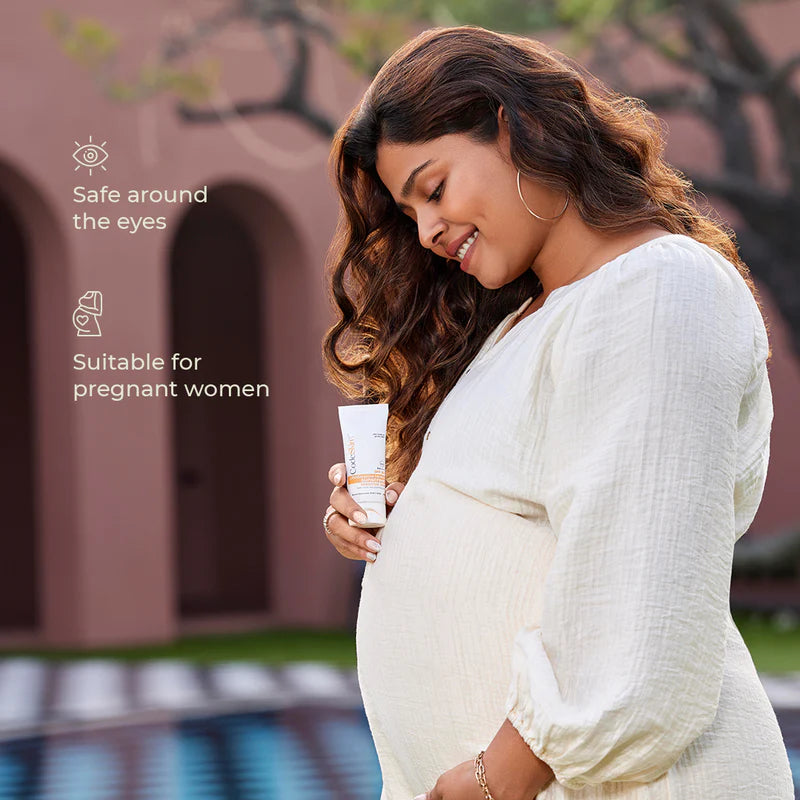 Pregnant women can safely apply this sunscreen. Children above the age of 2 years can also apply. Safe even around the eyes. It has natural sunscreen boosters such as Pongamia Pinnata Seed Extract and Hydroxyapatite (a natural and safe substitute for the sunscreen filter Titanium Dioxide).