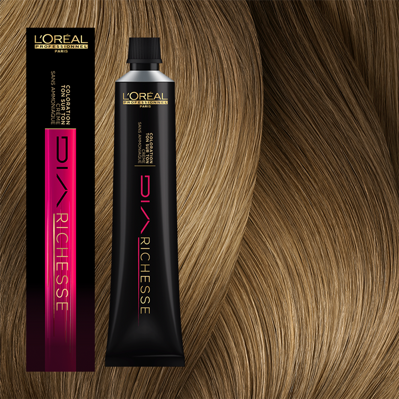 L'Oréal Professionnel Dia Richesse is an ammonia-free semi-permanent colour, with white hair coverage of up to 70% on base shades. Rich, deep reflects and exceptional softness.