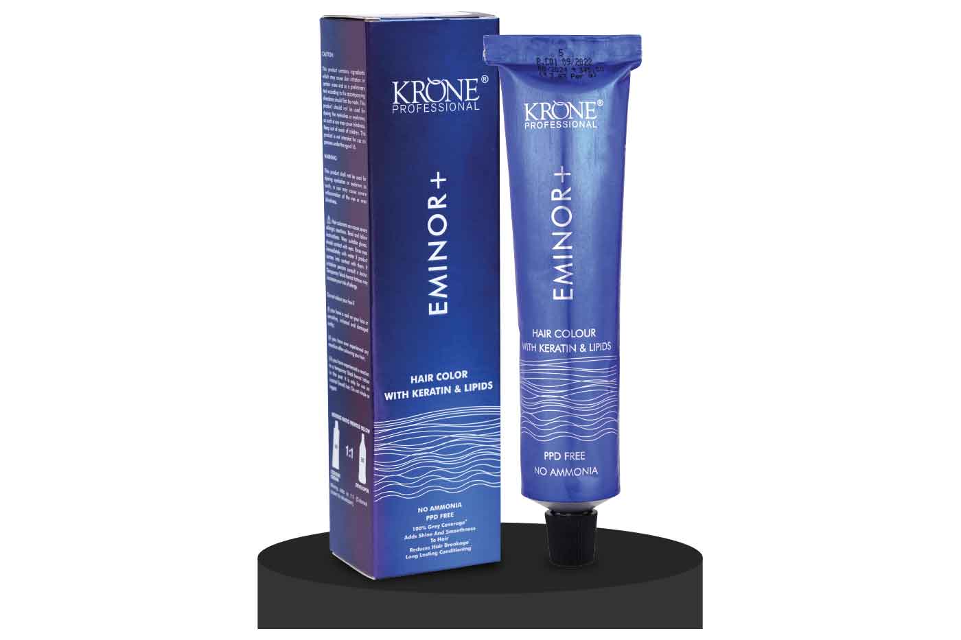 Krone Professional Eminor + Durable Permanent Hair Color have a technologically advanced expert formulation that is a one-of-a-kind combination of exceptional active ingredients. Free from para-phenylenediamine and ammonia, Eminor+ is available in shades of black, dark brown, natural brown, and light brown.