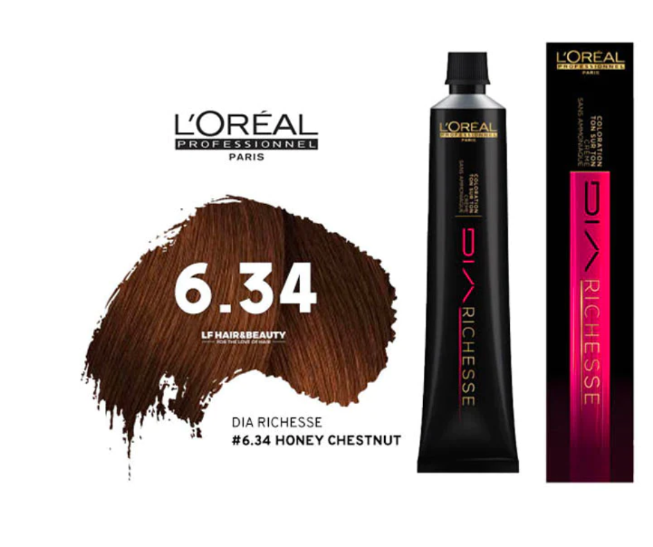 Loreal Professional Dia 6.34, Shade: Honey Chestnut is a tone-on-tone ammonia-free semi-permanent hair color that blends first greys and provides deep,... Lesen Sie mehr