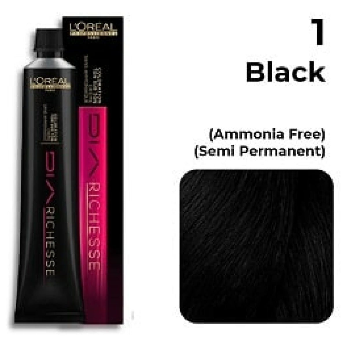 Loreal Professional Dia Richesse Shade No 1 "Black", L'Oréal Professional Dia Richesse Semi-Permanent Hair Dye provides ammonia-free tone on tone coloration and is ideal for natural hair.