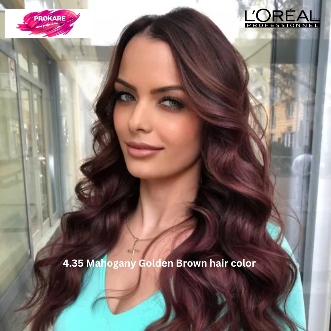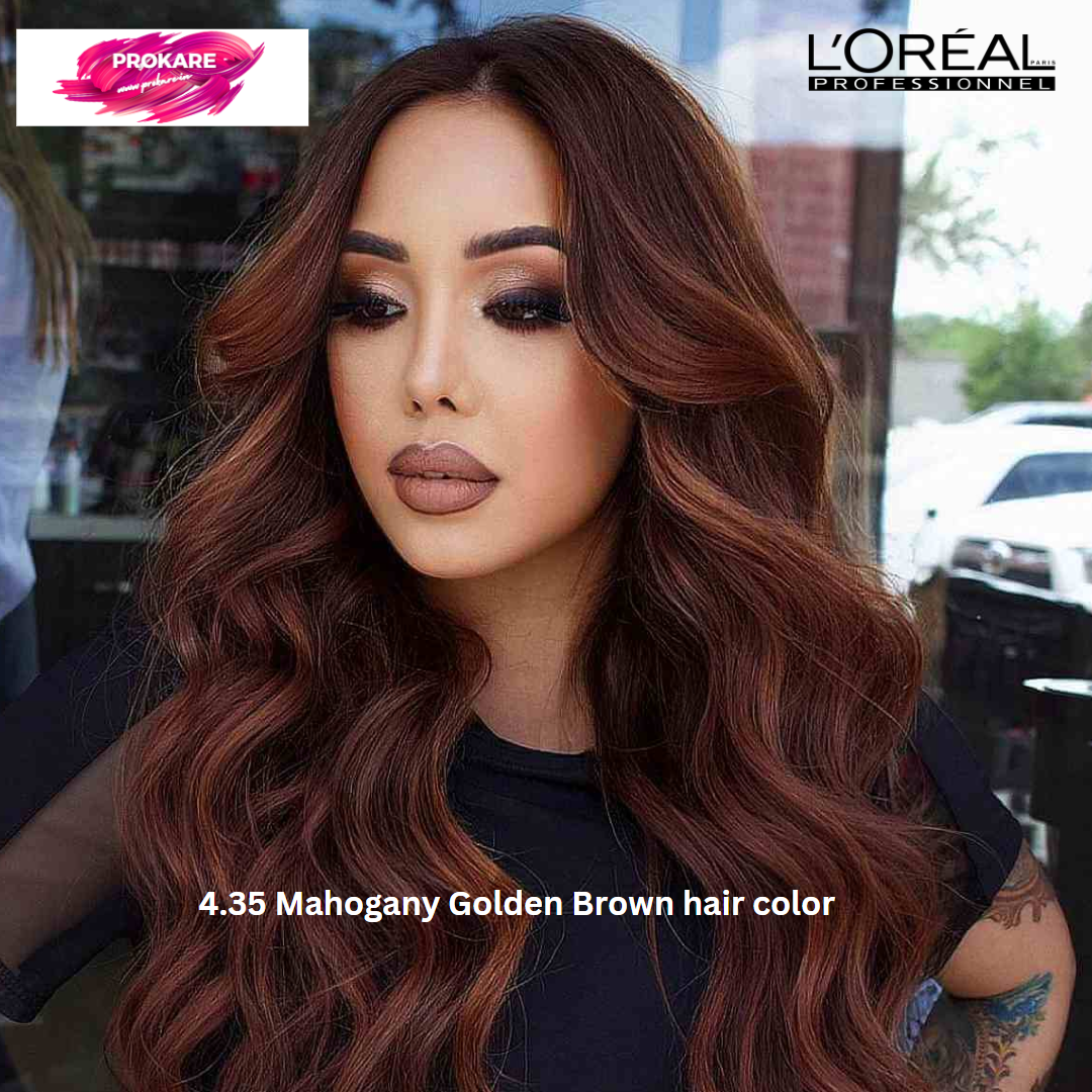 Majirel by L'oréal Shade No 4.35 Mahogany Golden Brown is a great choice when you're looking to add flashes of brown gold to a dark base hair colour whether natural or tinted.