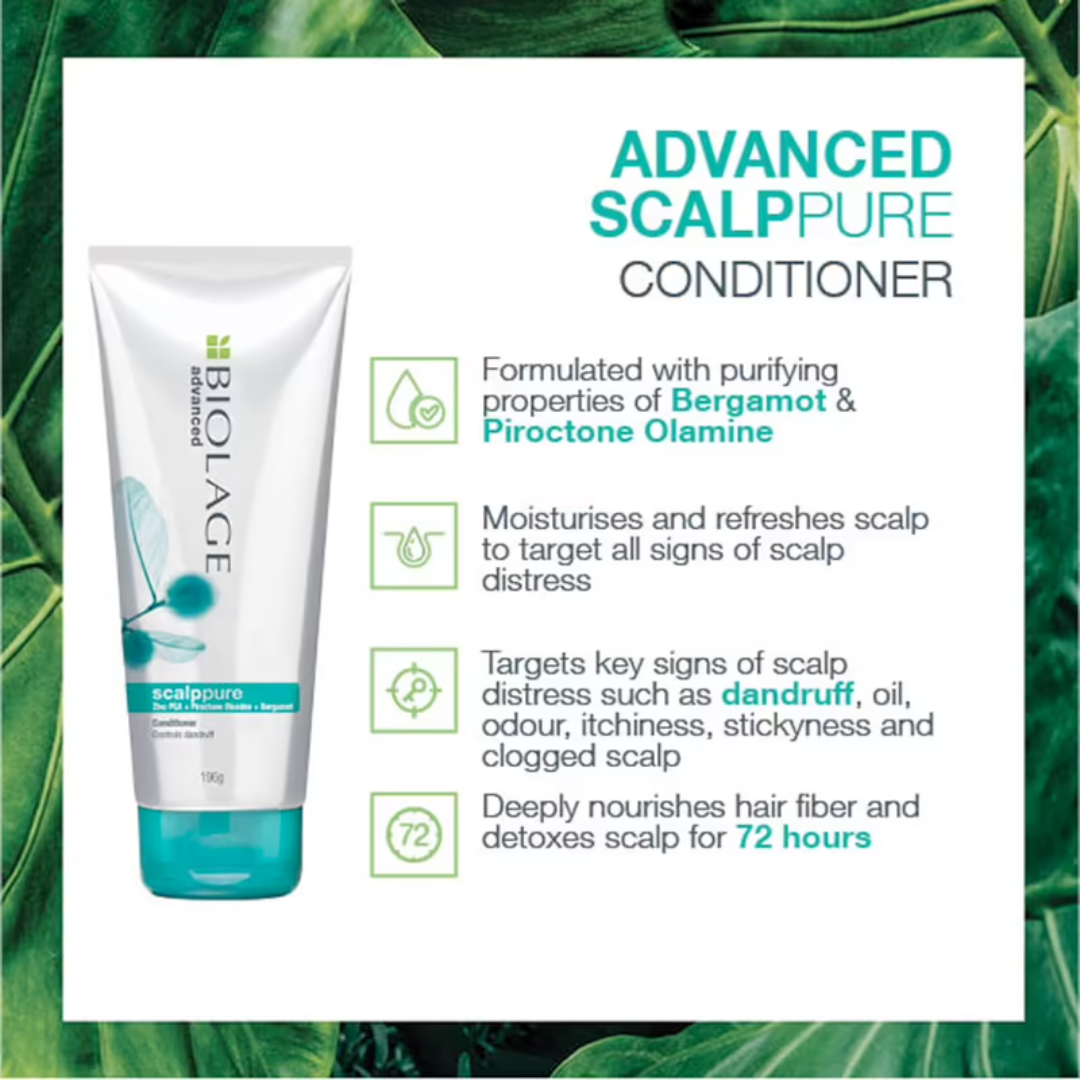 Matrix Biolage Scalppure Conditioner helps target key signs of scalp distress namely dandruff, excess oil, itchiness, odour, stickiness and a clogged scalp. This complete solution conditioner is a multi-correcting conditioner for all types of the scalp as well as hair.