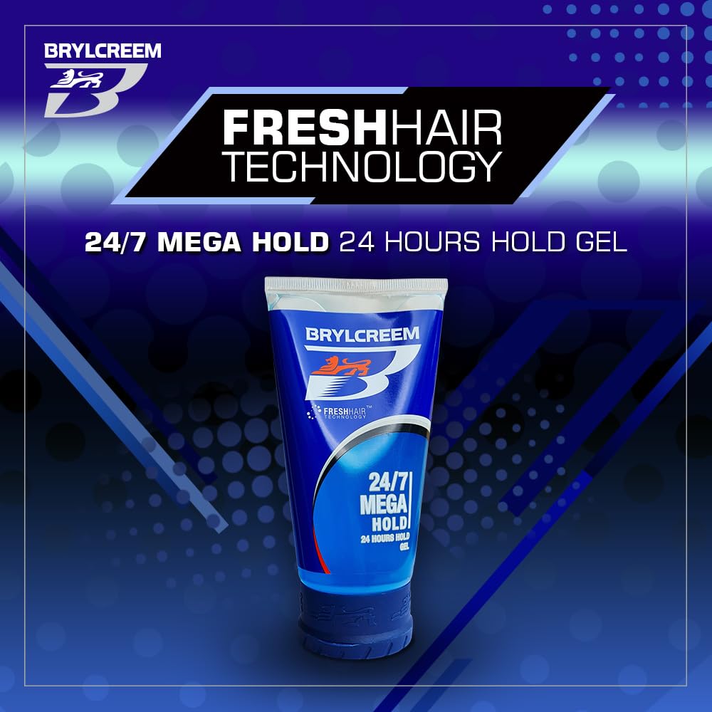 Brylcreem 24/7 Mega Hold Hair Styling Gel for Men, Long-Lasting 24 Hours Hold for Hair Setting, Non-Sticky Hair Wax Gel for Natural Look & High Shine, Sweat-Proof, No Flake & Residue, 150ml