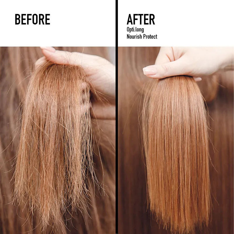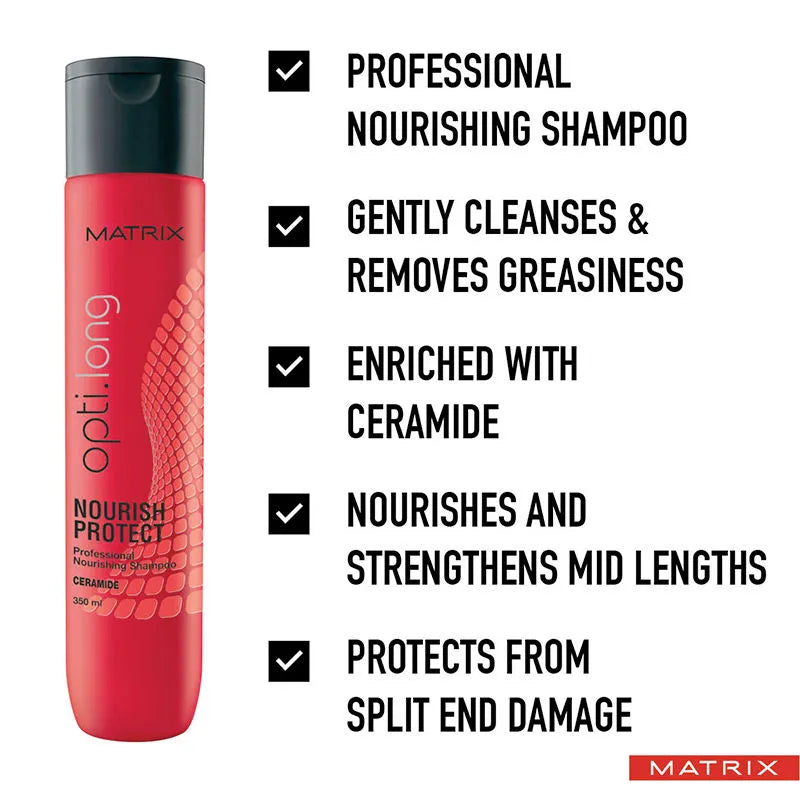 ¿El cabello enredado y las puntas abiertas te impiden conseguir el cabello de tus sueños? Descubre la solución profesional para un cabello largo y nutrido, el champú Matrix Opti Long Nourish Protect . Este champú nutritivo limpia y elimina suavemente la acumulación excesiva de grasa del cuero cabelludo y ayuda a que el cabello largo tenga una sensación saludable e hidratada.