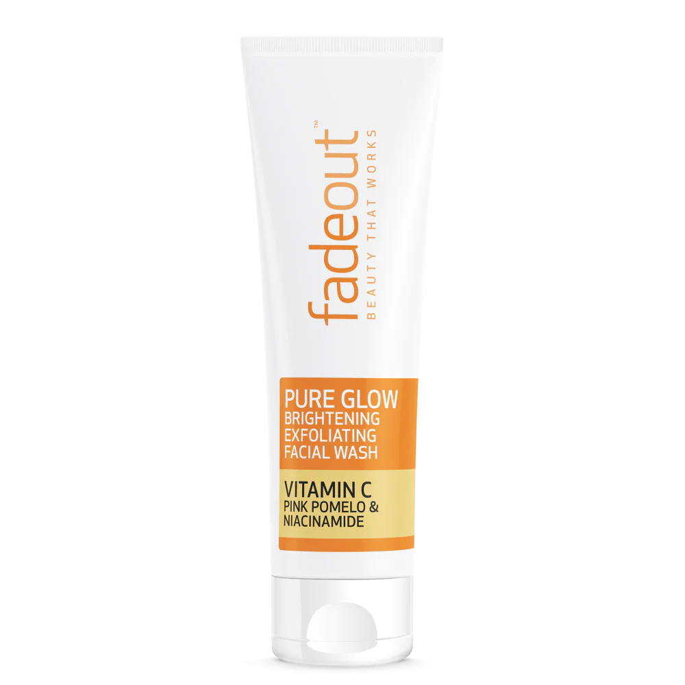 Fabricado e importado desde el Reino Unido, este gel exfoliante blanqueador Pure Glow de FadeOut (Reino Unido) revitaliza su régimen con el gel limpiador exfoliante iluminador Pure Glow con vitamina C para una dosis doble de luminosidad.