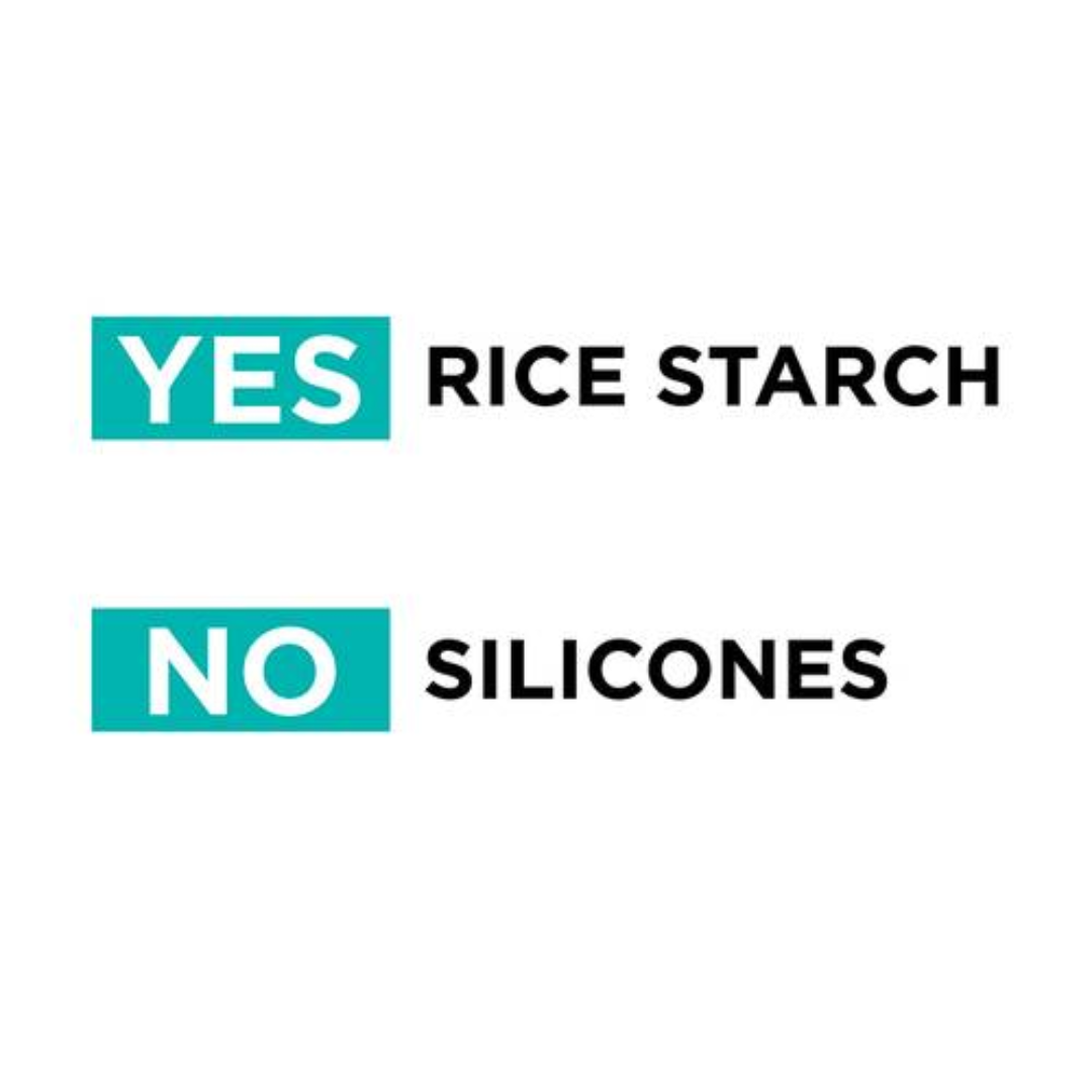 - Sí, almidón de arroz, sin siliconas: fórmula invisible potenciada por almidón de arroz.
