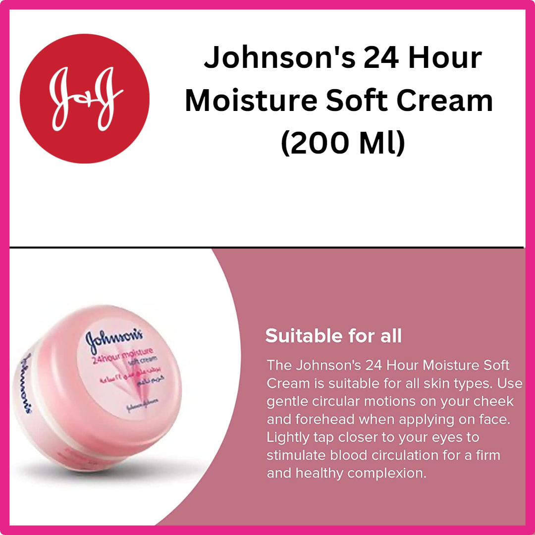 La crema hidratante suave Johnson & Johnson 24 Hrs Moisture Soft Cream de 200 ml proporciona 24 horas de hidratación... Leer más...