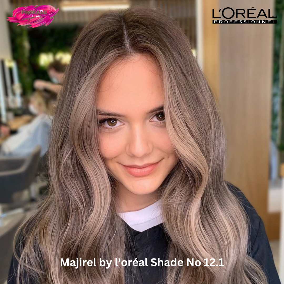 Loreal Majirel Majilift 12.1 es una gran opción cuando buscas añadir destellos de CASTAÑO CENIZA a un color de base oscuro, ya sea natural o teñido. Su fórmula tiene un grado de aclaración muy alto, lo que significa que no necesitas aclarar previamente y que brinda resultados realmente intensos.