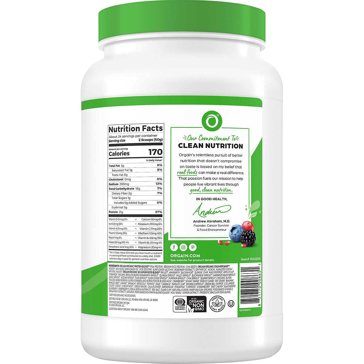 - Organic Plant-Based Protein: Provides 21g of organic protein per serving, sourced from peas, brown rice, and chia seeds.
