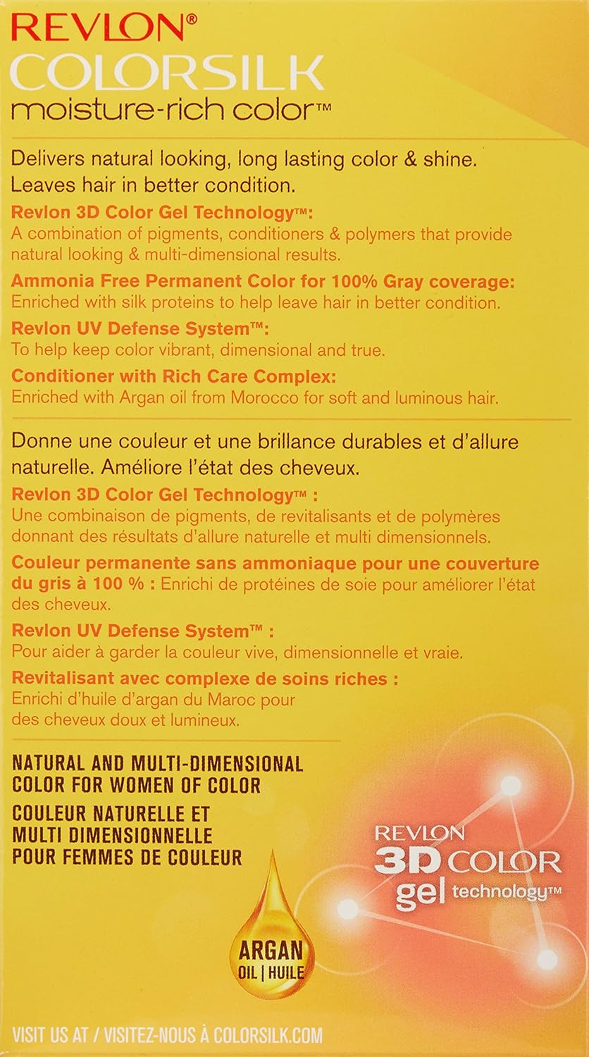 Color Silk de Revlon: un color hermoso para el cabello. La tecnología 3D COLOR de Revlon Color Silk te brinda un color natural y uniforme desde la raíz hasta las puntas que se mantiene hermoso entre coloraciones. Además, los tonos intensos de Color Silk se mantienen hermosos, incluso entre coloraciones.
