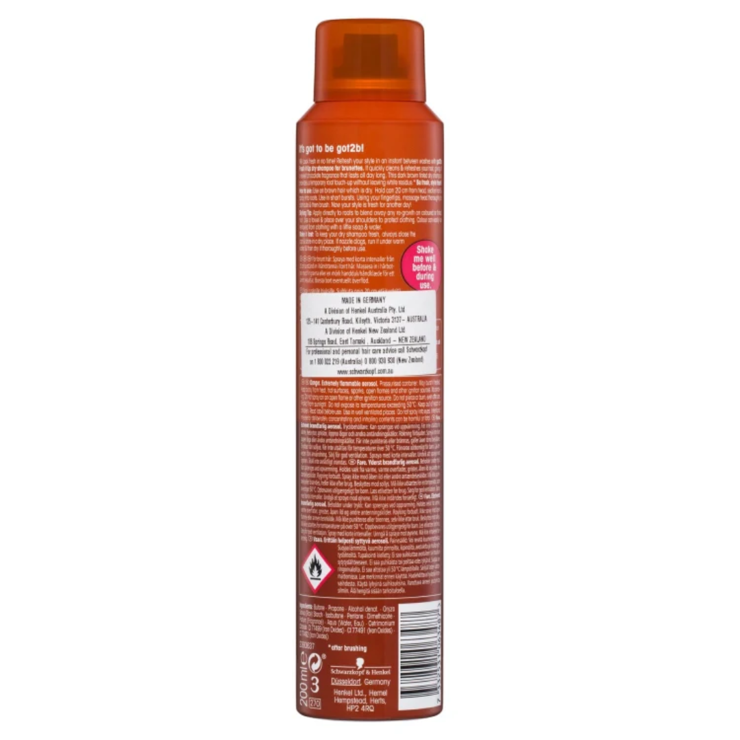 Champú seco Schwarzkopf got2b Fresh It Up Sweet Chocolate, para una frescura durante todo el día ¡Luce un look renovado... Leer más...