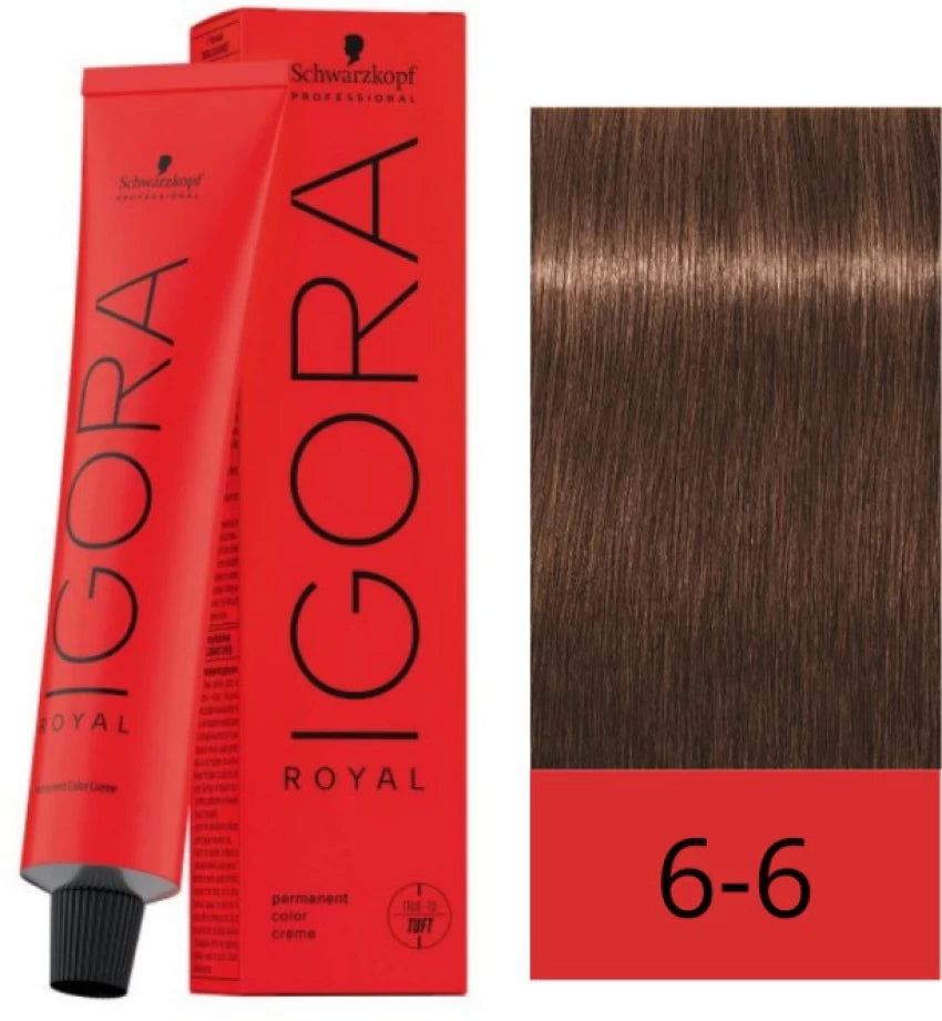 - Schwarzkopf Igora Royal 6-6 tiene una retención del color hasta un 50% más prolongada.