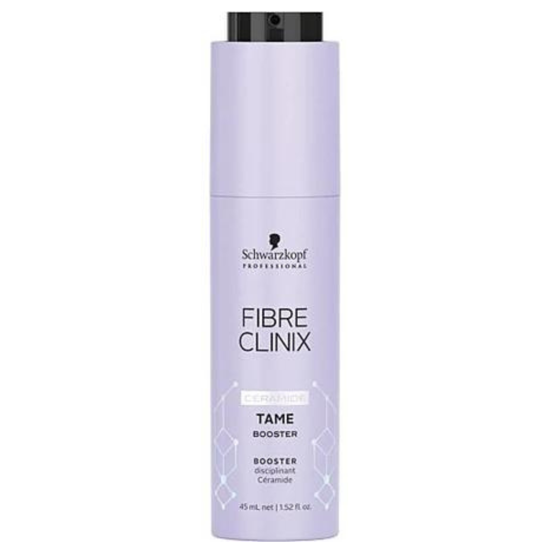 Schwarzkopf Professional Fibre Clinix Tame Booster es un tratamiento capilar concentrado que contiene ceramidas para domar y nutrir el cabello, dejándolo más suave y sin frizz. Se puede utilizar para mejorar la elasticidad, el brillo y la manejabilidad del cabello. Cuando se utiliza con el tratamiento Tri-Bond para cabello grueso de Fibre Clinix, puede fortalecer la estructura del cabello y aumentar el brillo y la suavidad.