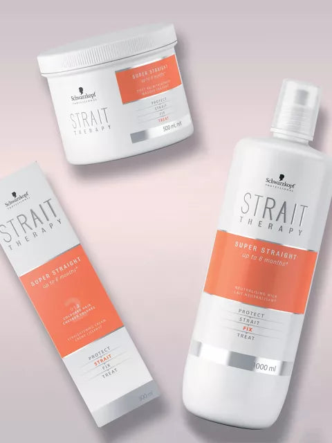 Schwarzkopf Professional Strait Therapy is a scientifically advanced hair treatment that delivers 100% straight hair for up to 6 months. This breakthrough therapy utilizes a combination of keratin, cationic polymers, and silicone oils to smooth and nourish hair, resulting in strong, healthy, and frizz-free locks.