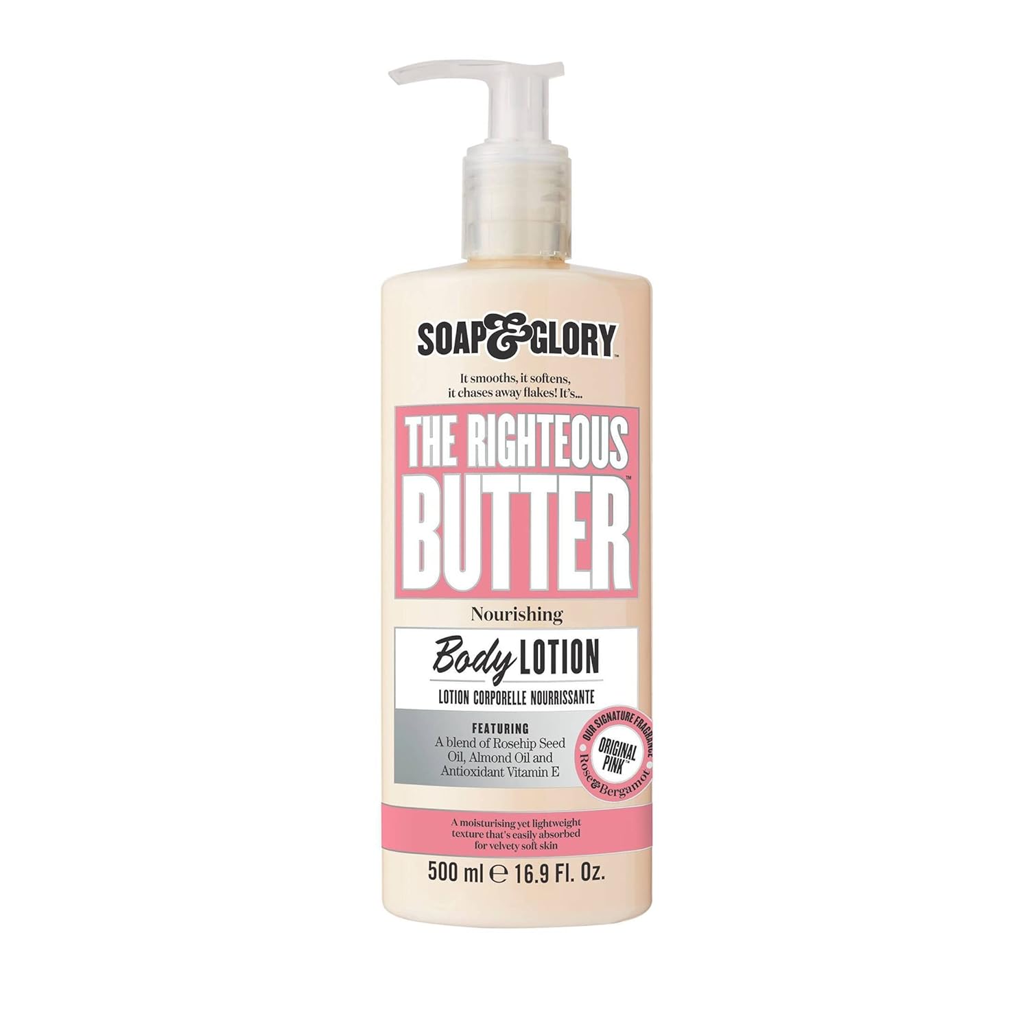 Mima tu piel con The Righteous Butter de Soap & Glory, una lujosa y nutritiva loción corporal importada del Reino Unido. Con una infusión de manteca de semilla de cacao, aceite de almendras y vitamina E antioxidante, esta loción de 250 ml dejará tu piel hidratada y renovada. Una marca premium de Boots UK.