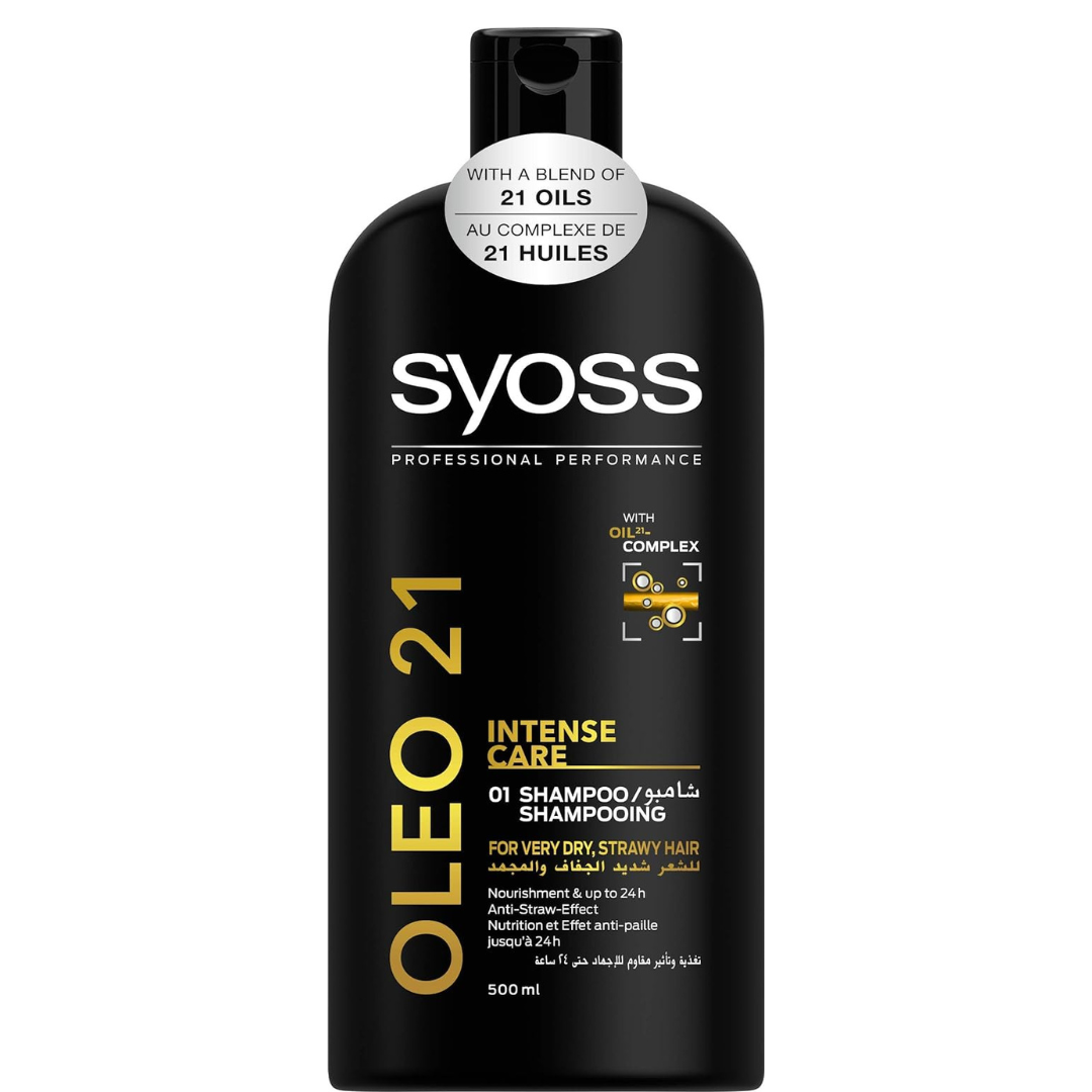 Syoss Oleo 21 Champú Cuidado Intensivo 500 ml está especialmente desarrollado para cabello seco y dañado.