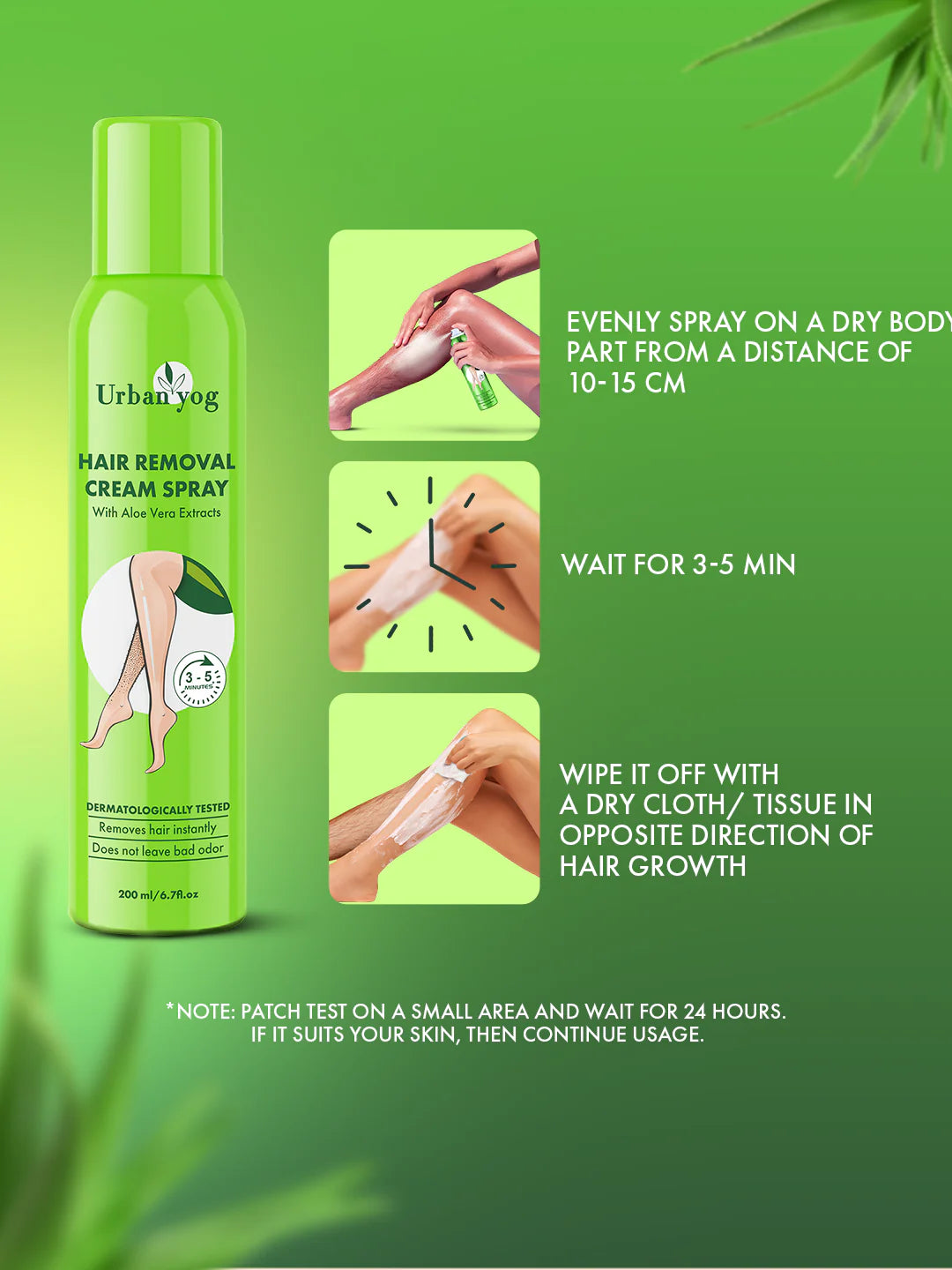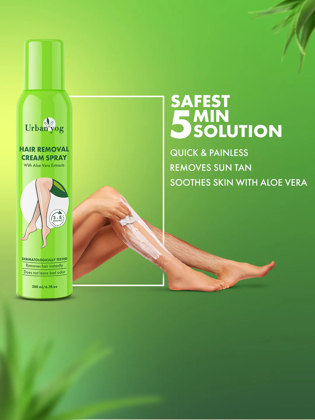 Its gentle, yet effective formulation is perfect for regular use, ensuring that your skin remains smooth, radiant, and free of unwanted hair. Enjoy the convenience and efficiency of Urban Yog Hair Removal Cream Spray, and step out with the confidence that comes from having perfectly cared-for skin.