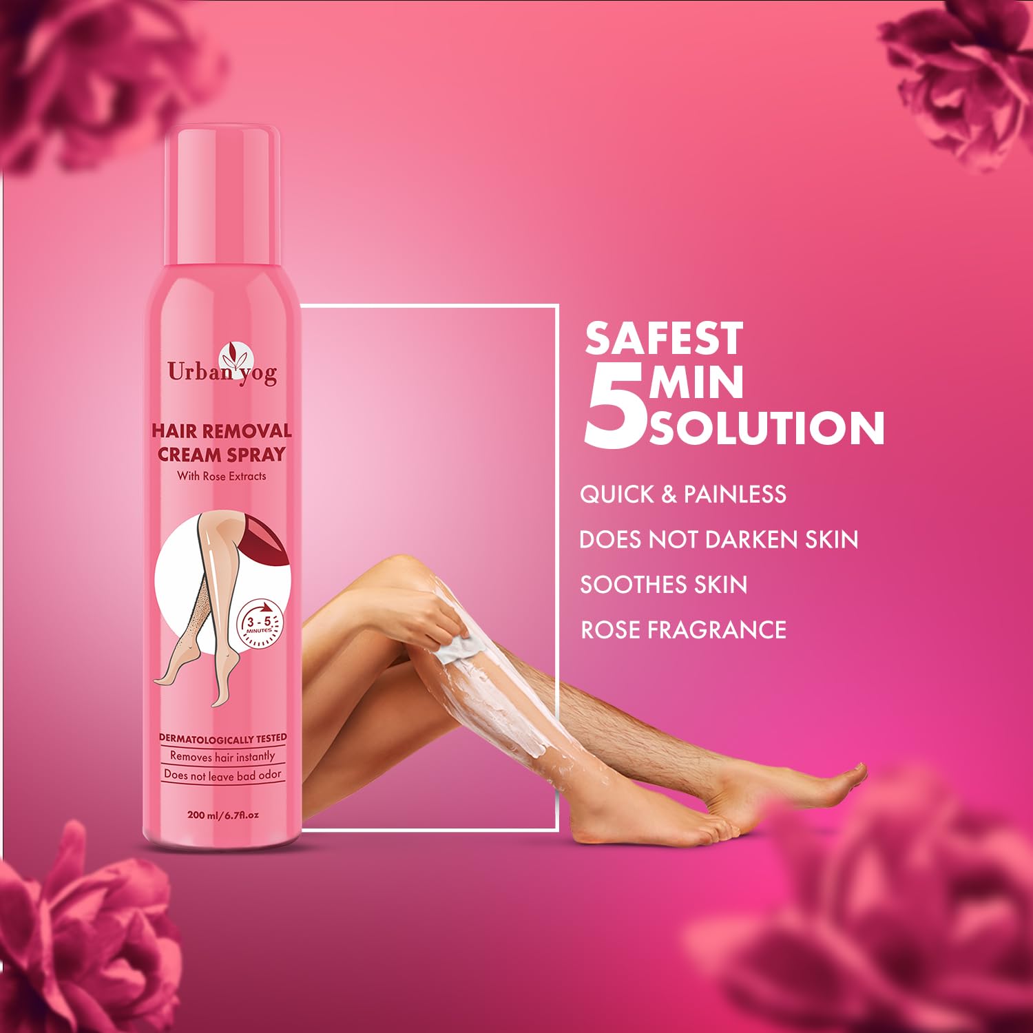 Urban Yog Hair Removal Cream Spray for Women is your innovative solution for effortless, pain-free hair removal. Developed for the modern woman, this unique spray formula harnesses the power of natural extracts combined with a refreshing rose fragrance to deliver silky smooth skin in minutes.