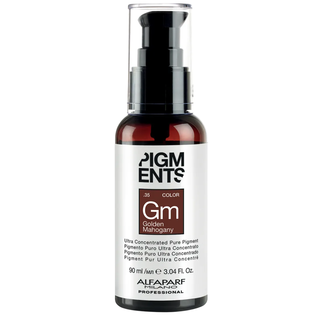 Golden Mahogany .35 from the Pigments line is a hair color that gives depth and brilliance to dark brown shades. It can be mixed with a wide variety of products to revive and keep colors looking vibrant and bright.