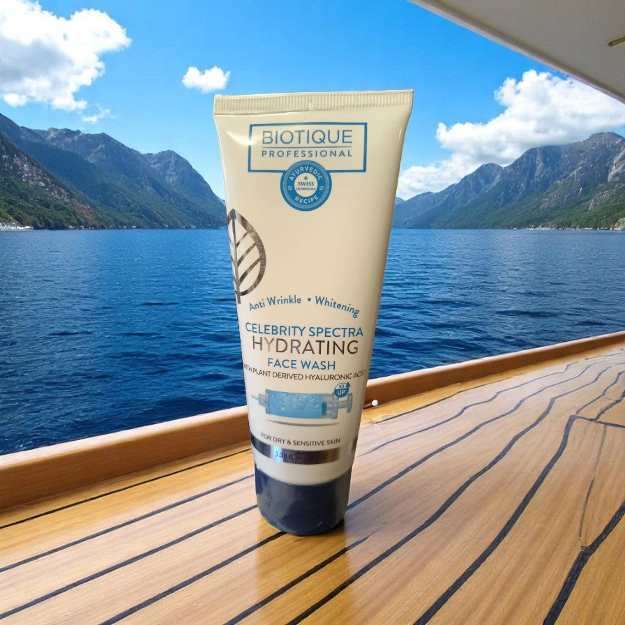 In Biotique Professional Celebrity Spectra Hydrating face wash**, plant-derived hyaluronic acid works synergistically with other botanical ingredients to deeply nourish and repair the skin whole day, resulting in a fresher, healthier, and more radiant complexion by each passing day.