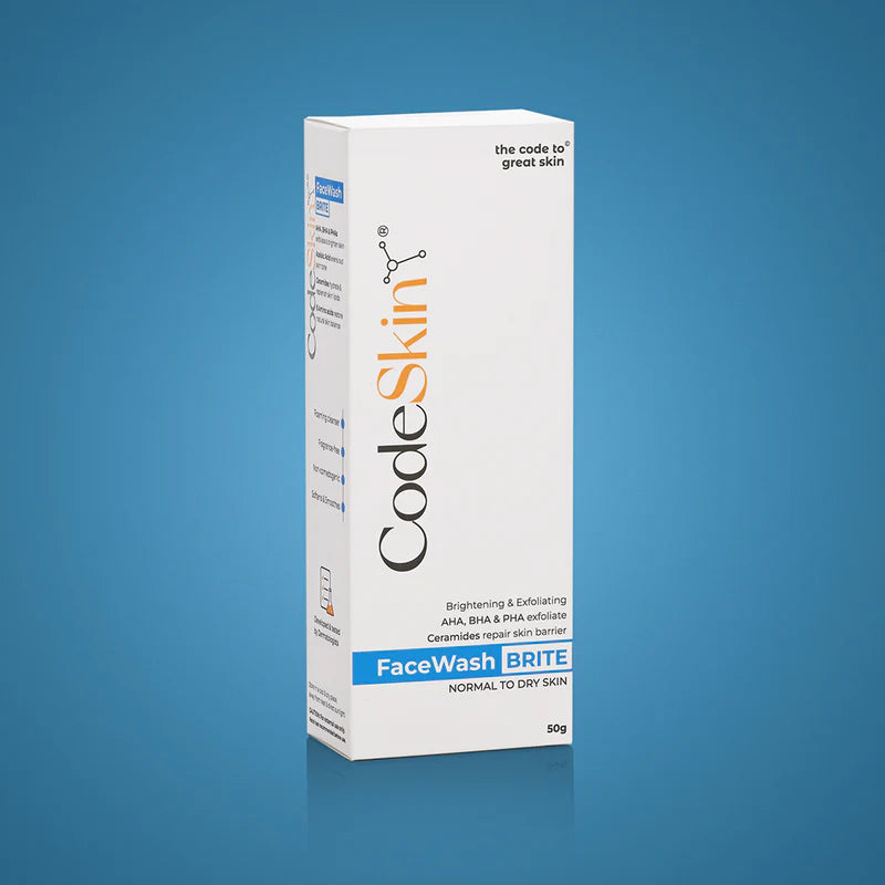 Code Skin Face Wash BRITE is a gentle foaming cleanser that instantly brightens skin. Perfect for normal to dry skin. Combining AHA (alpha hydroxy acids), BHA (beta hydroxy acids), PHA (poly hydroxy acids) , and natural exfoliating enzymes like Papain and Bromelain help in reducing hyperpigmentation.