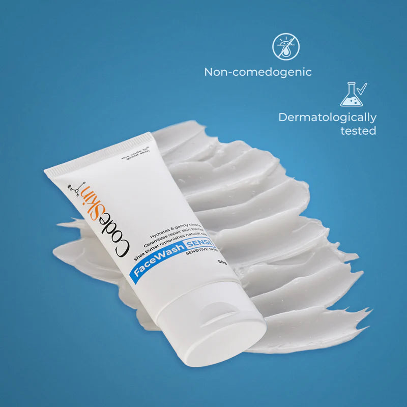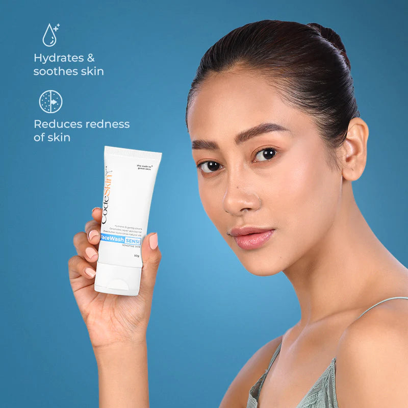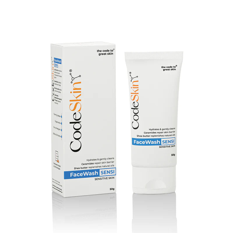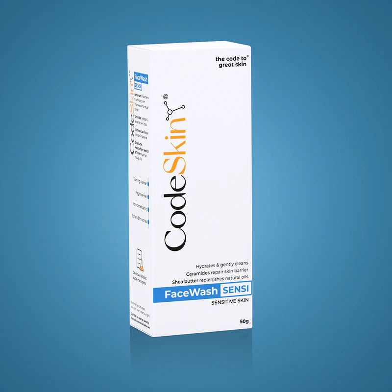 - CodeSkin FaceWash Sensi has Lactic Acid, a mild exfoliant that does not disrupt the natural barrier of the skin or cause redness and irritation.