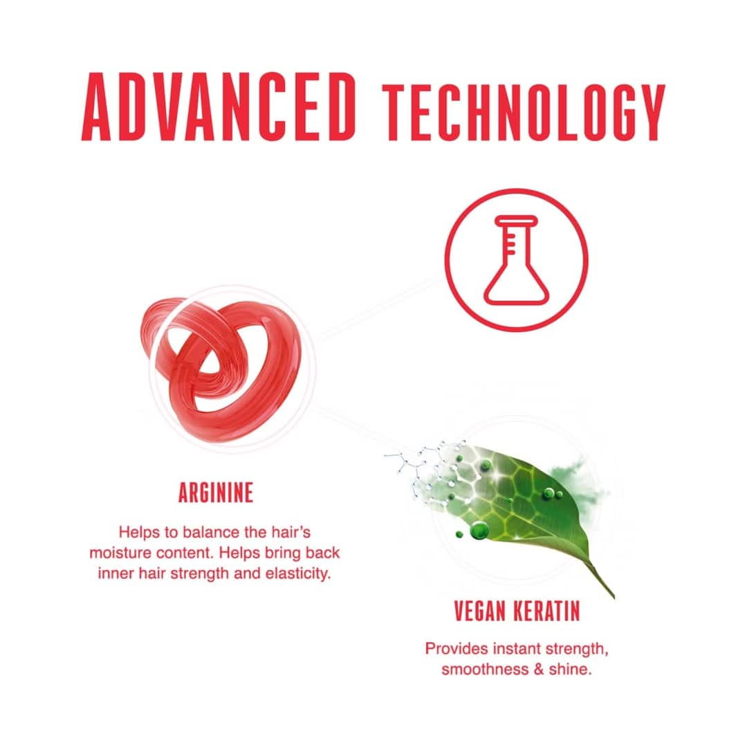 - Arginine: Balances moisture levels, restores hair strength and elasticity.